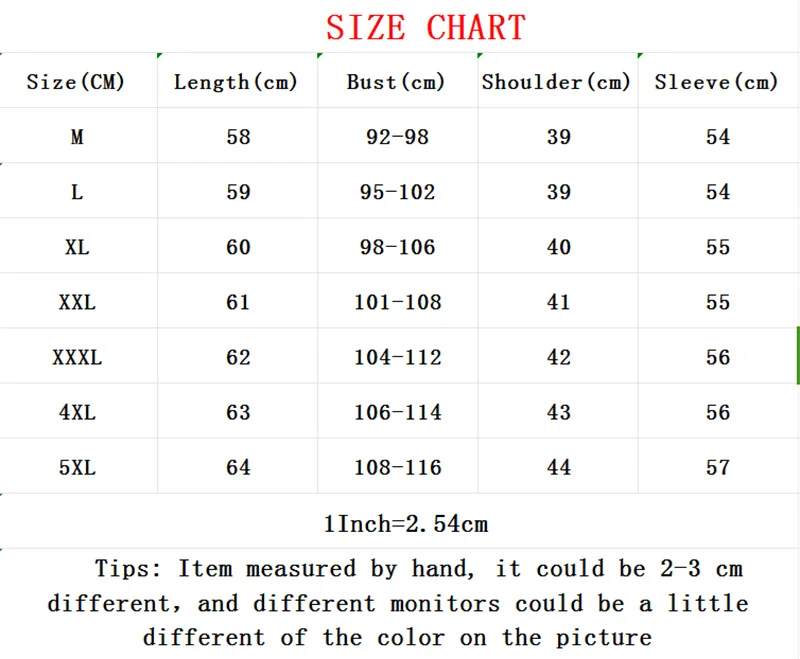 size_info: {"sizeInfoList":[{"length":{"cm":"58","inch":"22.83"},"size":"M","vid":-40},{"length":{"cm":"59","inch":"23.23"},"size":"L","vid":-41},{"length":{"cm":"60","inch":"23.62"},"size":"XL","vid":-42},{"length":{"cm":"61","inch":"24.02"},"size":"XXL","vid":-43},{"length":{"cm":"62","inch":"24.41"},"size":"XXXL","vid":-44},{"length":{"cm":"63","inch":"24.80"},"size":"4XL","vid":-45},{"length":{"cm":"64","inch":"25.20"},"size":"5XL","vid":-46}]}
