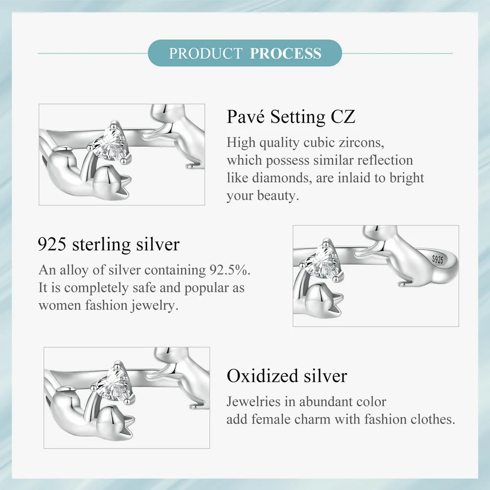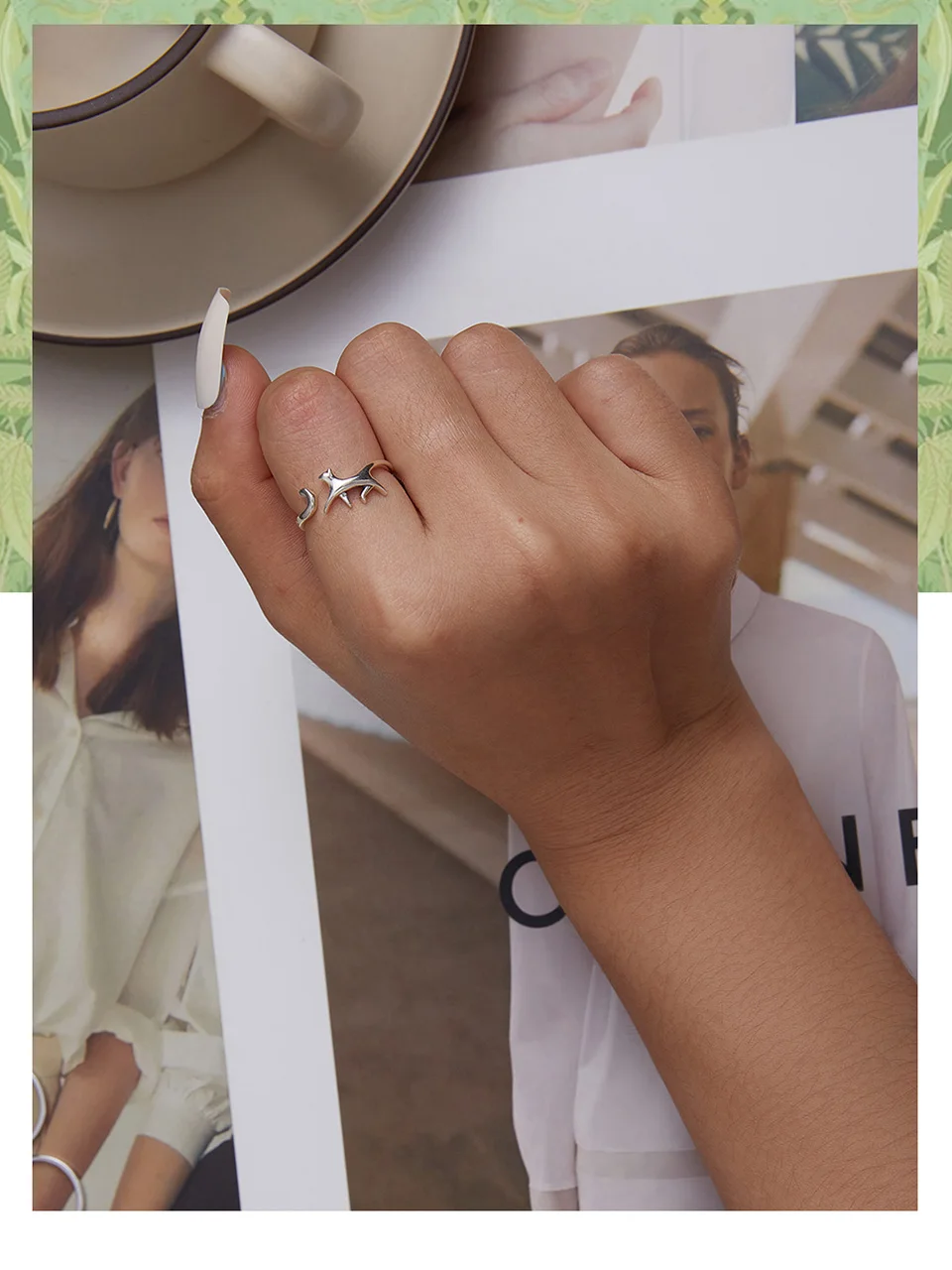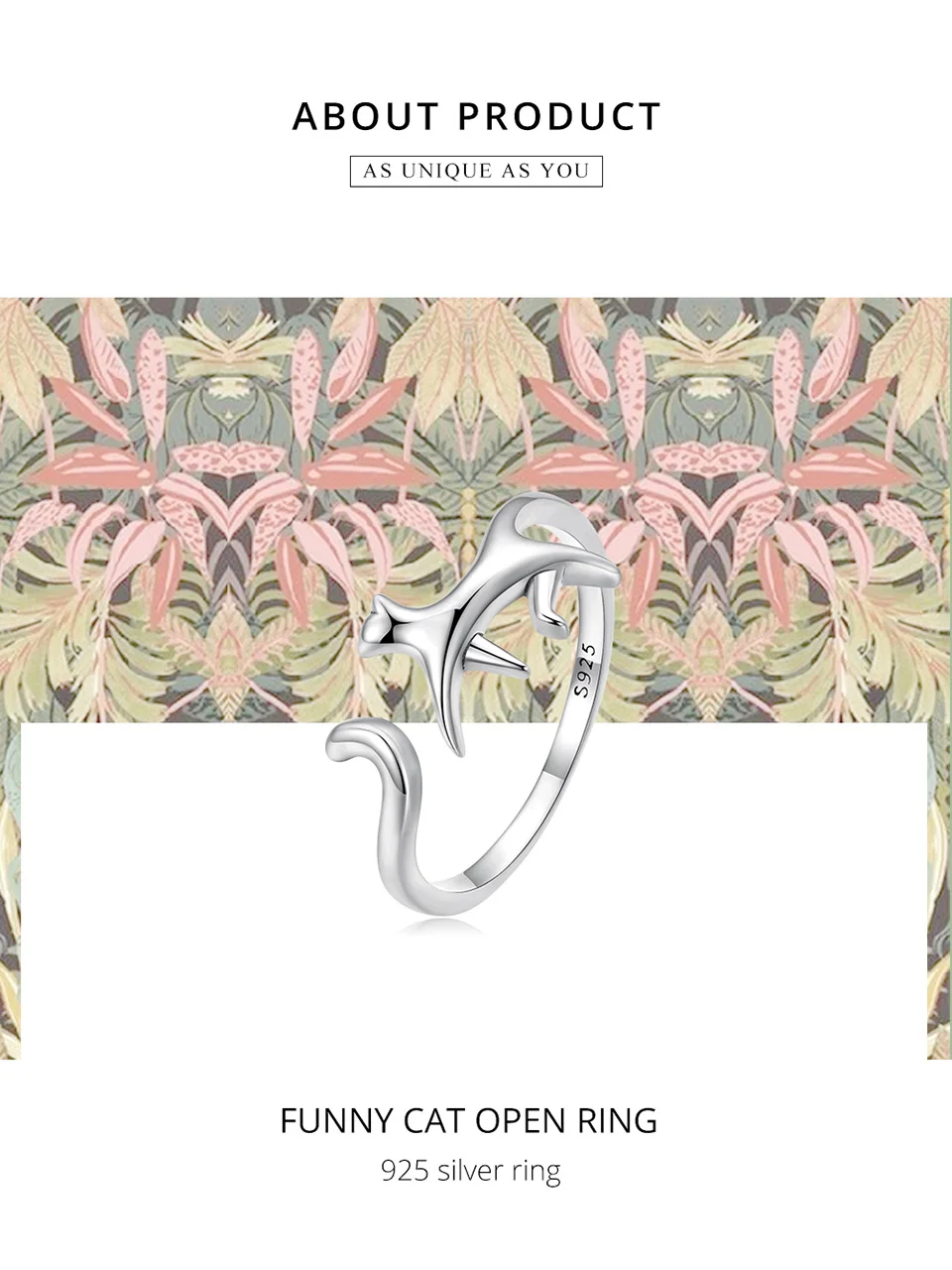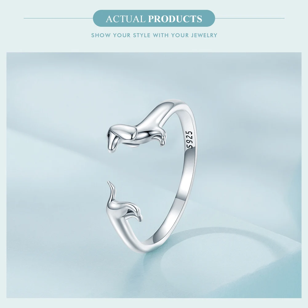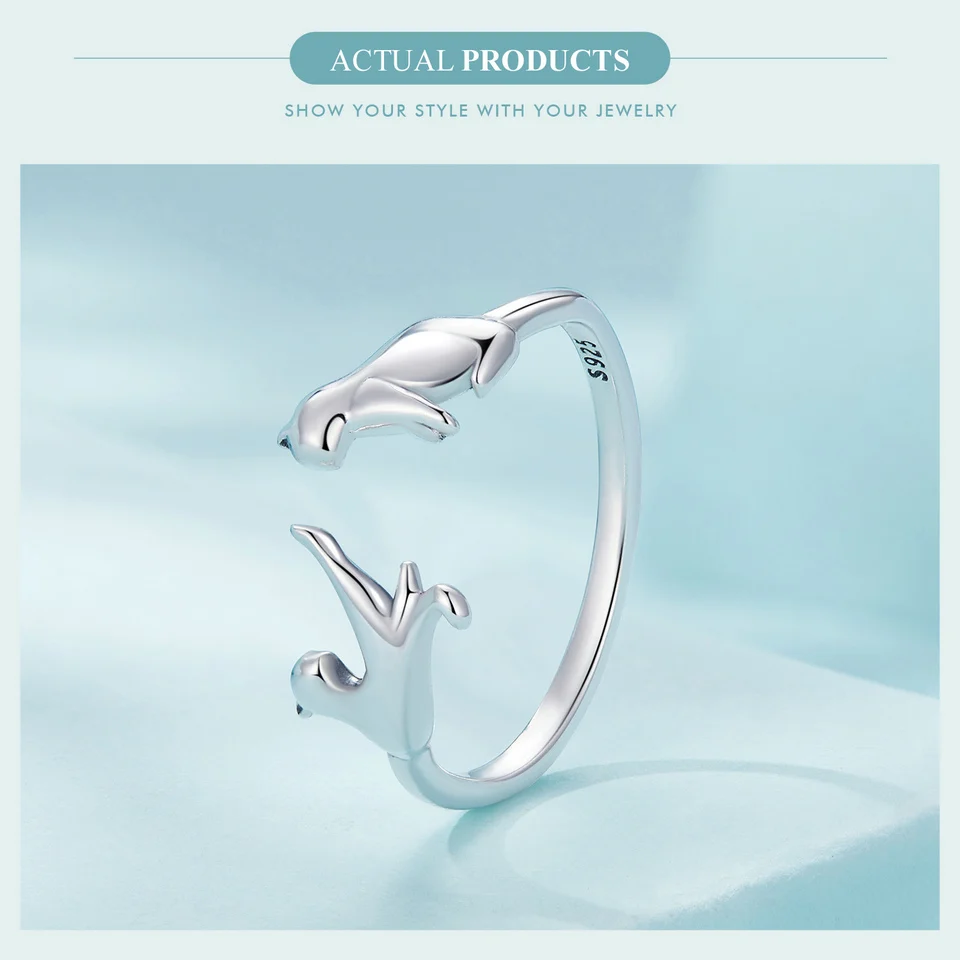 WOSTU 100% 925 Sterling Silver Cat Dog Opening Ring Hot Sale Pet Rings For Women Original Fashion Animal Jewelry Party Gift