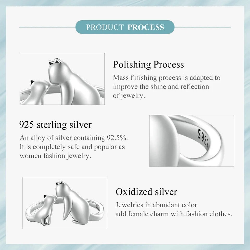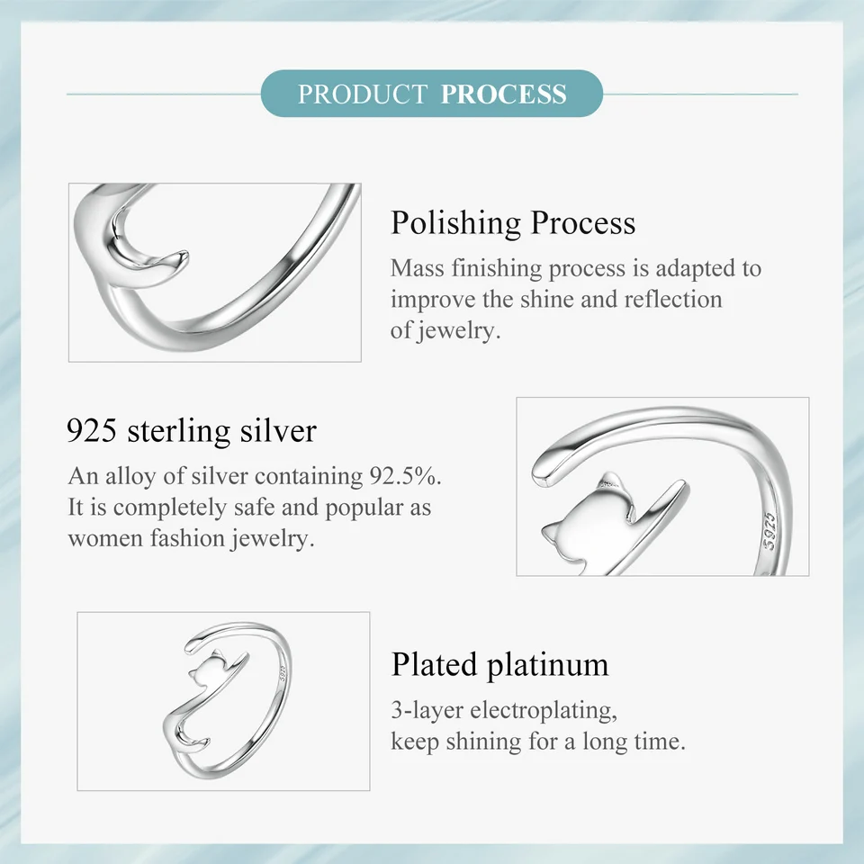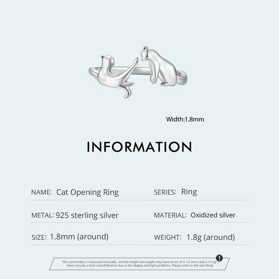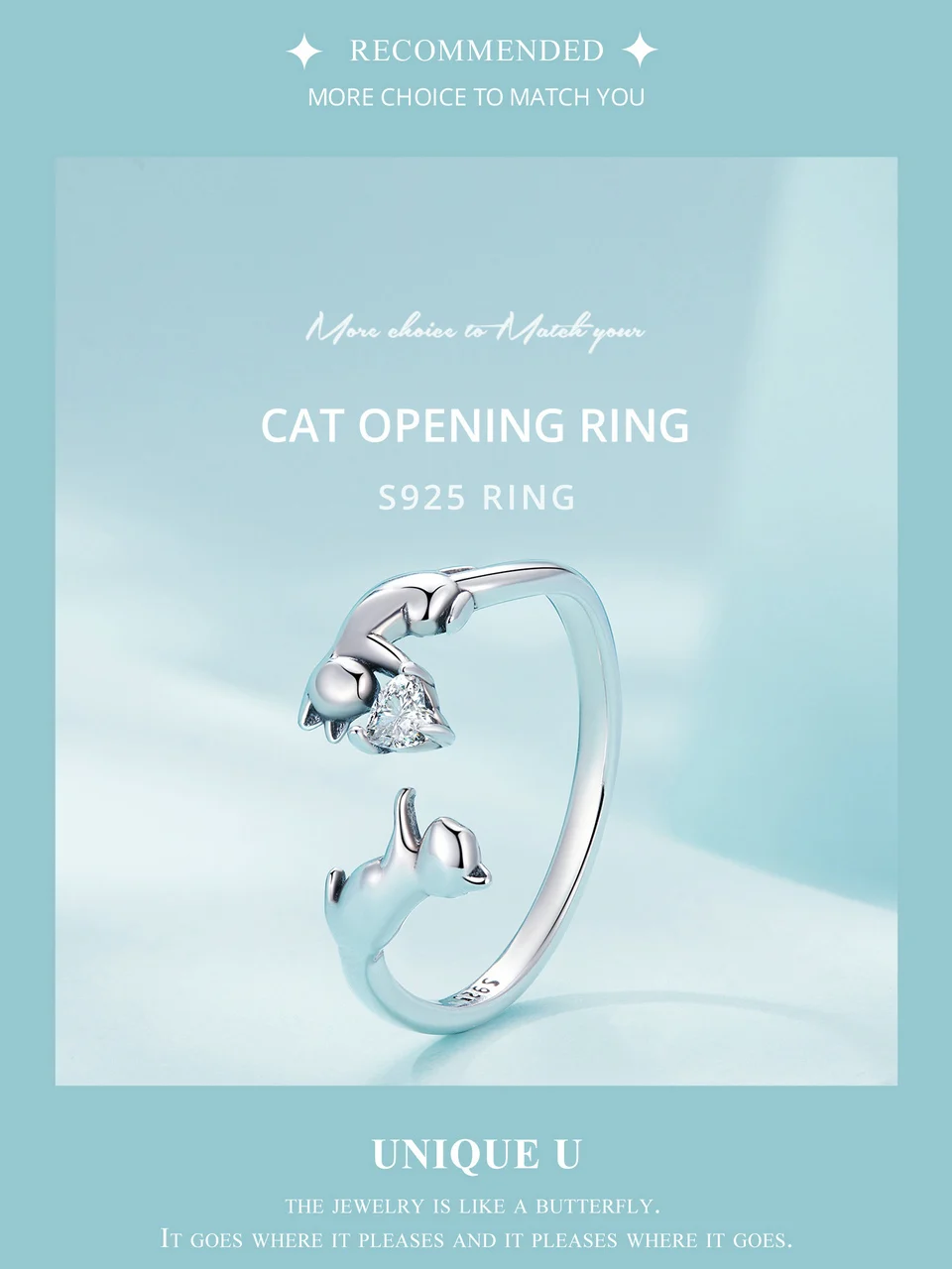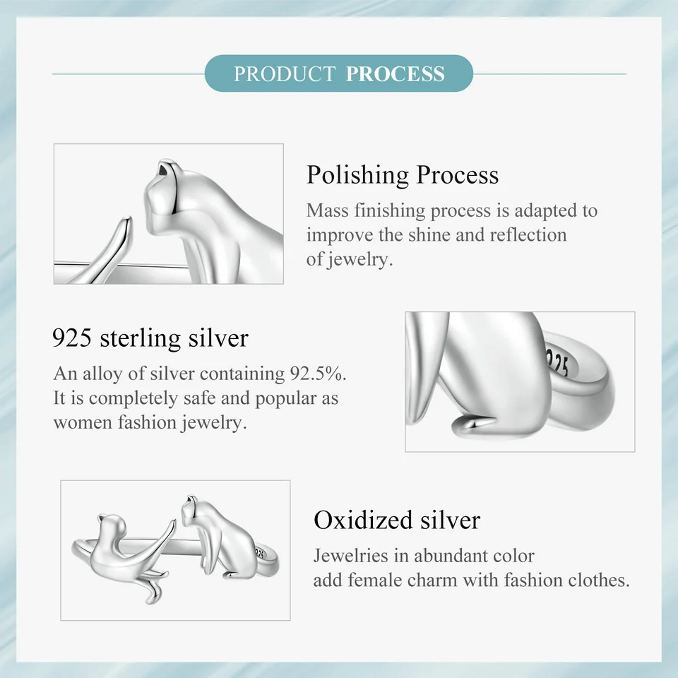 WOSTU 100% 925 Sterling Silver Cat Dog Opening Ring Hot Sale Pet Rings For Women Original Fashion Animal Jewelry Party Gift