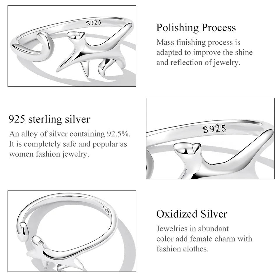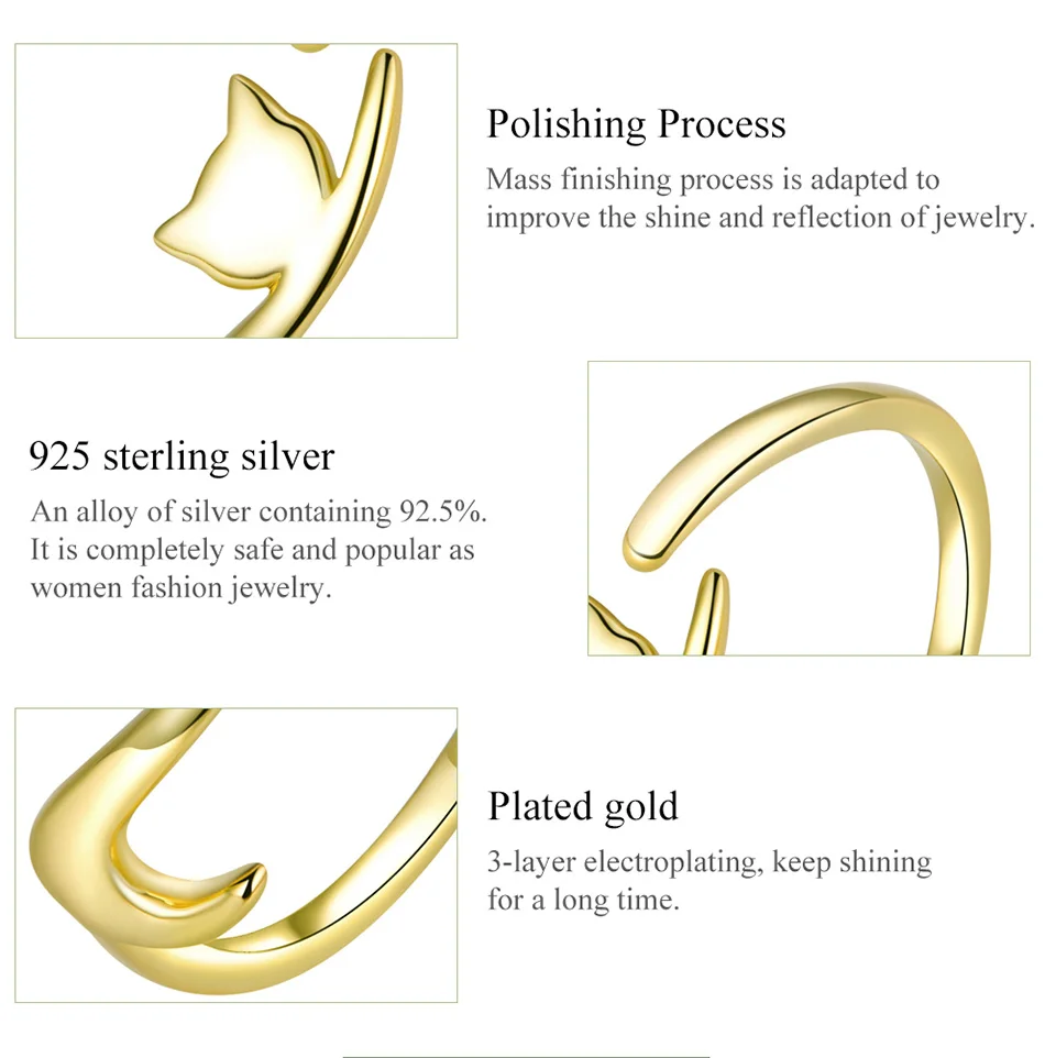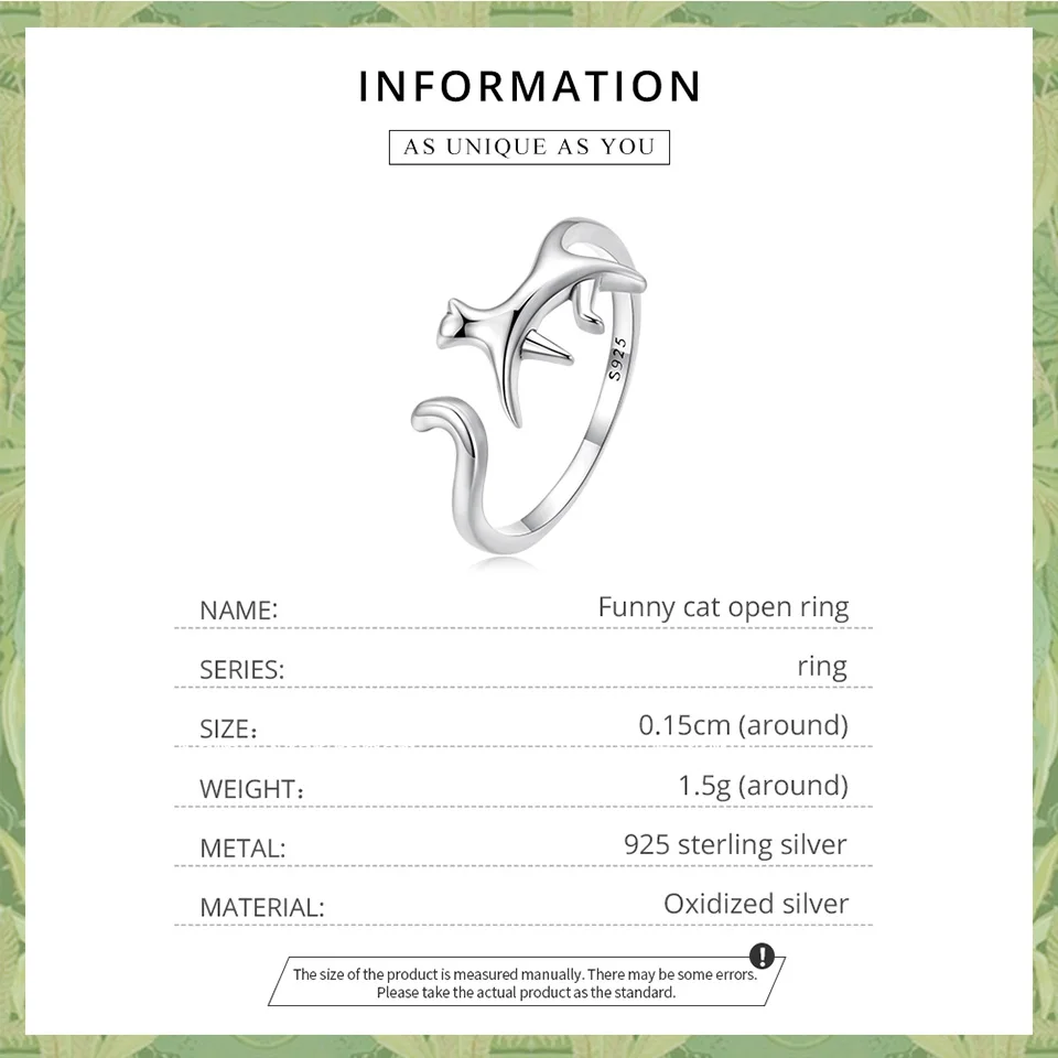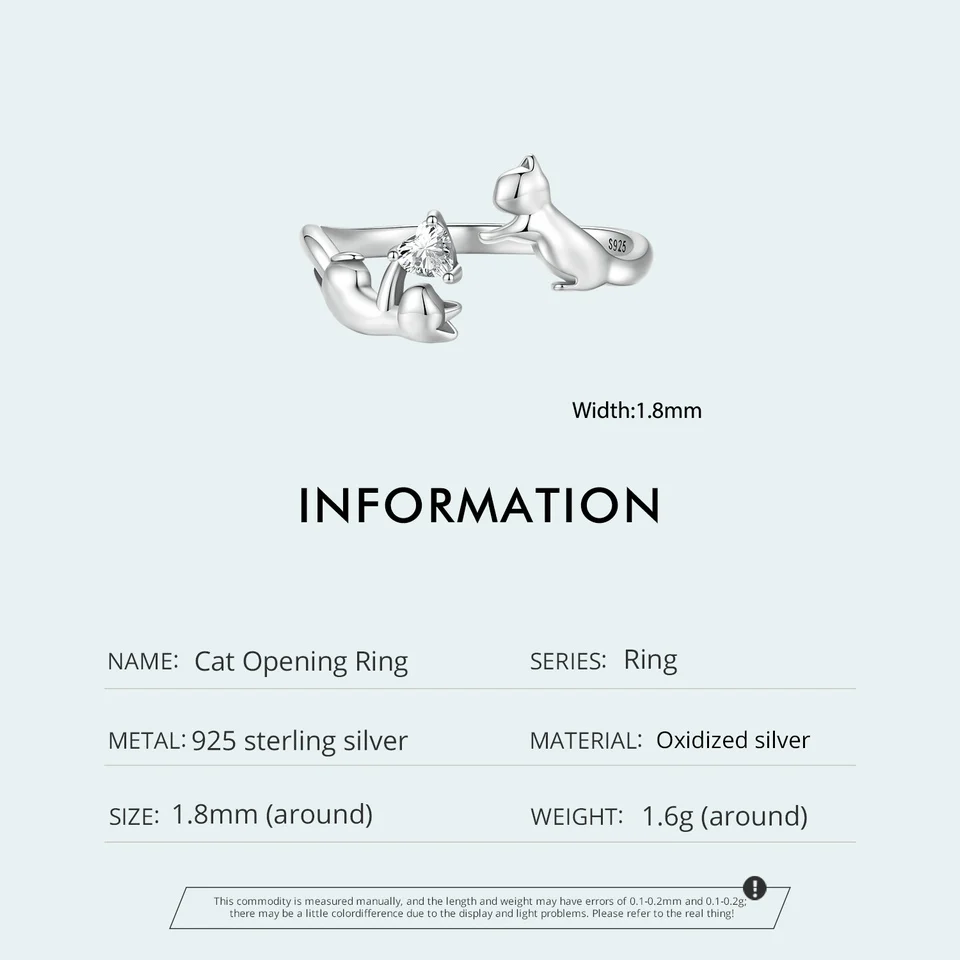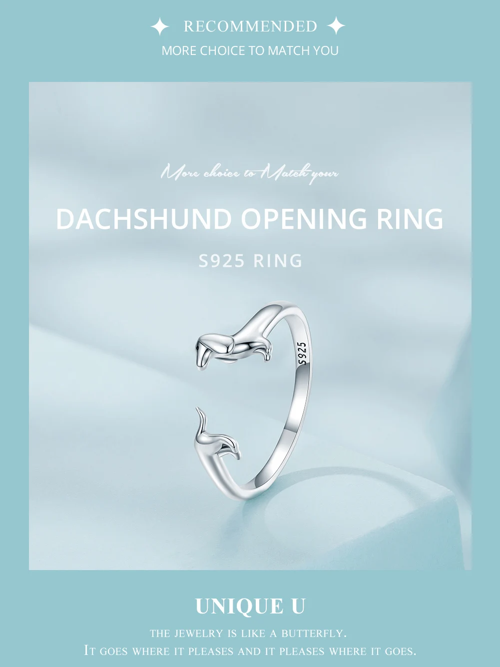 WOSTU 100% 925 Sterling Silver Cat Dog Opening Ring Hot Sale Pet Rings For Women Original Fashion Animal Jewelry Party Gift